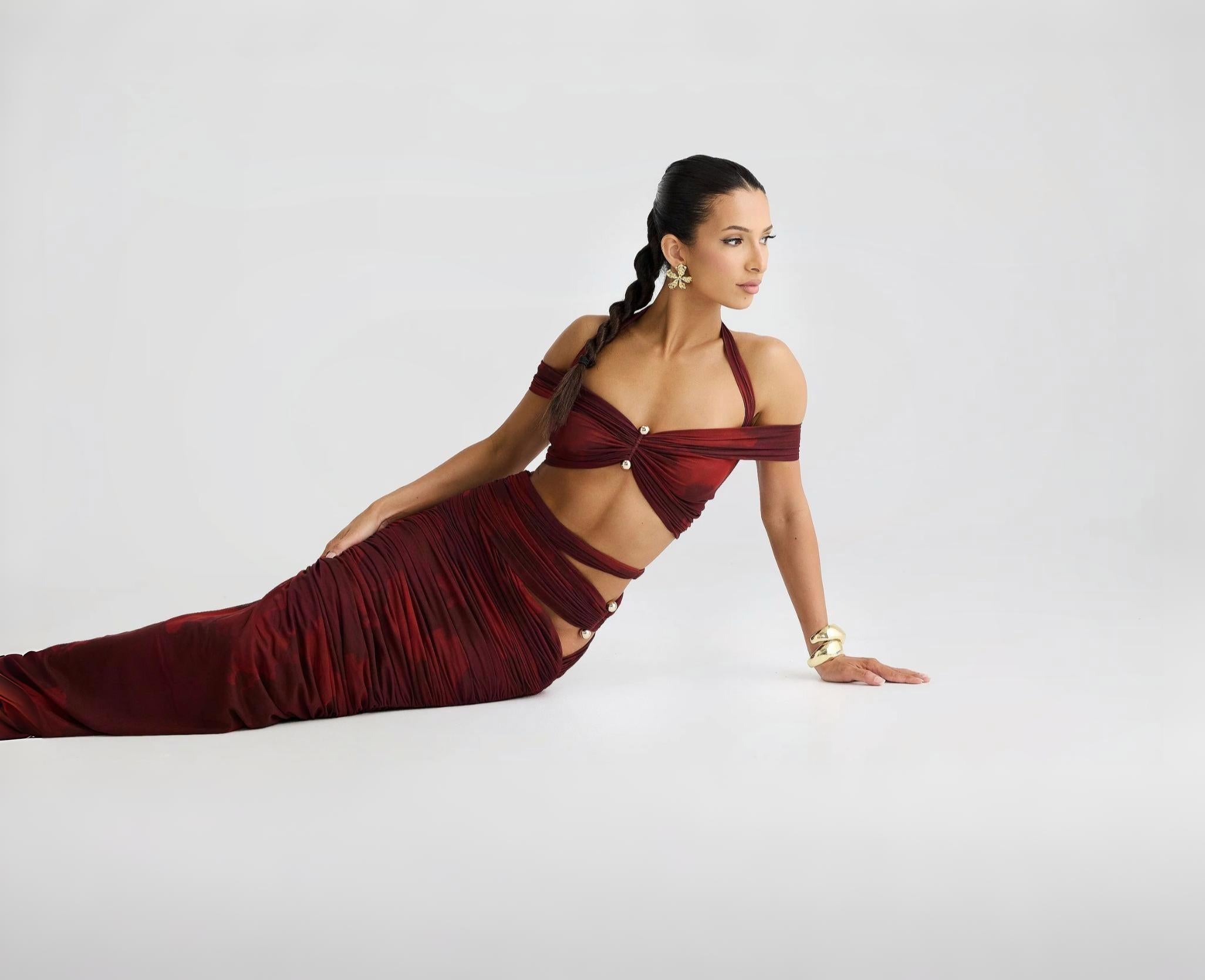Isolde - Maxi Klänning fångar ögonblicket med sin elegans och djärva stil. Den höga slitsen...